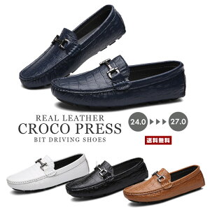 送料無料 メンズ ビット付 クロコ型押し ドライビングシューズ 男性用 紳士 ワニ クロコダイル クロコ 型押し 革 皮 カウレザー リアルレザー 金具 ビット デッキ ローファー カジュアル 素足 小さいサイズ 春 夏 秋 のおすすめ キテミヨ Kitemiyo