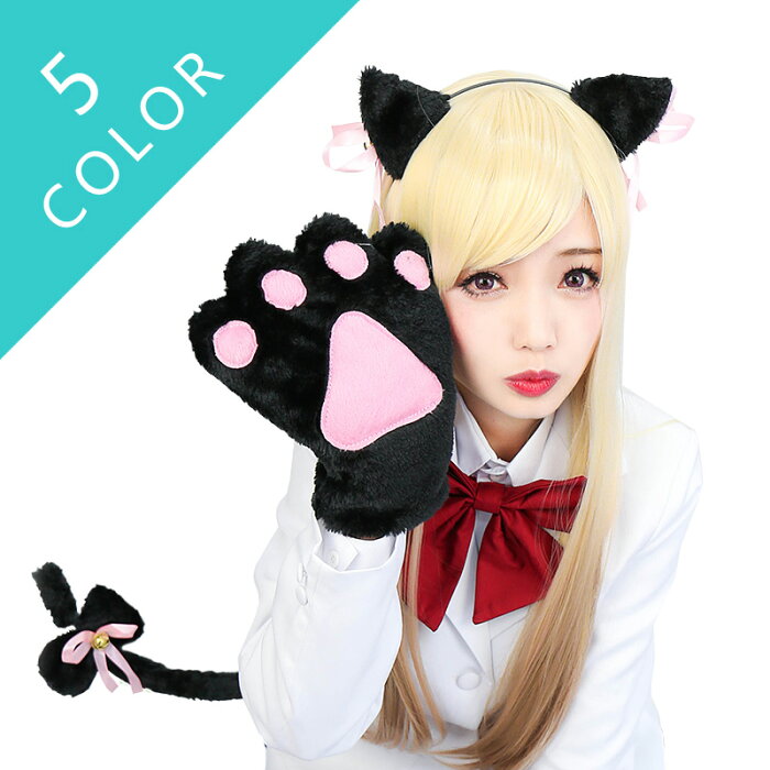 猫耳 カチューシャ 猫 コスプレ 可愛い 大人用 子供用 ハロウィン 衣装 仮装 コスプレ セクシー ネコミミ ねこみみ ねこ耳 にくきゅう 富士達 ふじたつ 猫耳カチューシャ 手袋 首飾り しっぽ 猫耳4点セット メール便可 カチューシャ 猫耳を笑うもの