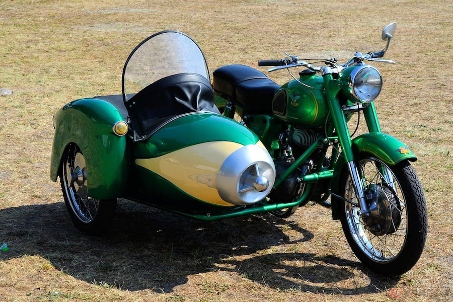 サイドバック 古いバイク陸王と 犬