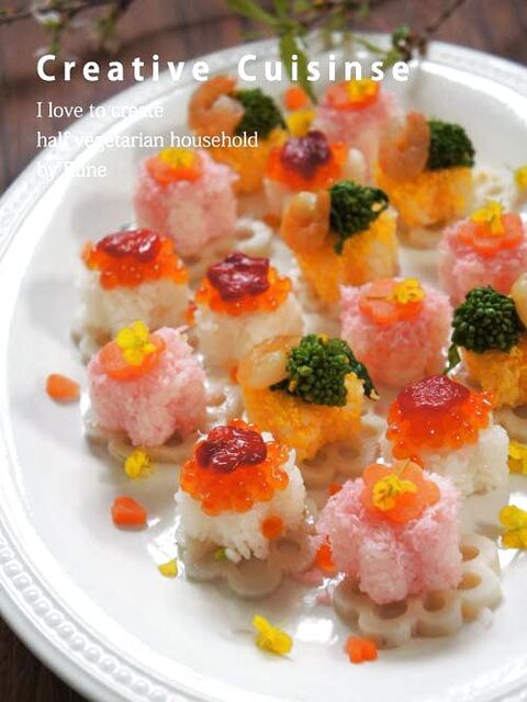梅の花の形がかわいい カナッペ風に盛り付けるひな祭り寿司 暮らしニスタ