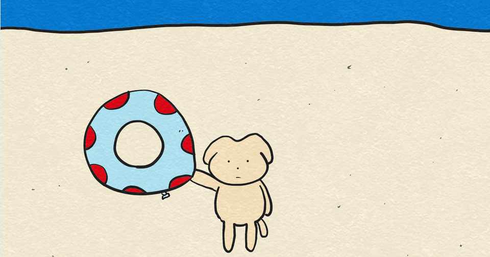 4コマ漫画 犬シリーズ 海 浮き輪でのんびり Four Panel Cartoon Dog Series Sea Relaxing On The Floatation Wheel ねこやま Webcomic Artist Note