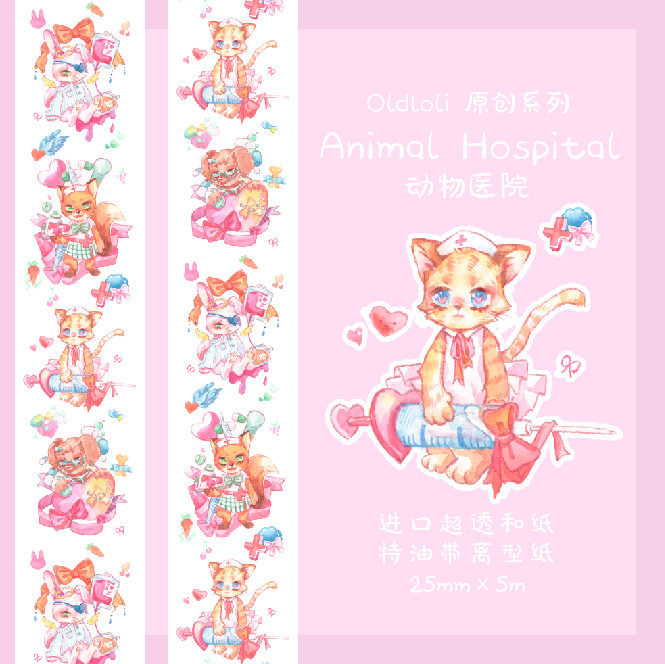 原創studio貓咪動物醫院少女心手賬特油和紙膠帶帶離型紙手賬素材