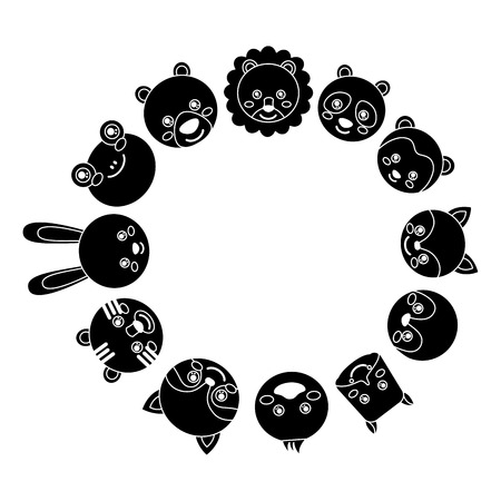 サークルアイコン画像でかわいい動物 ベクトルイラストデザインは黒線 のイラスト素材 ベクタ Image