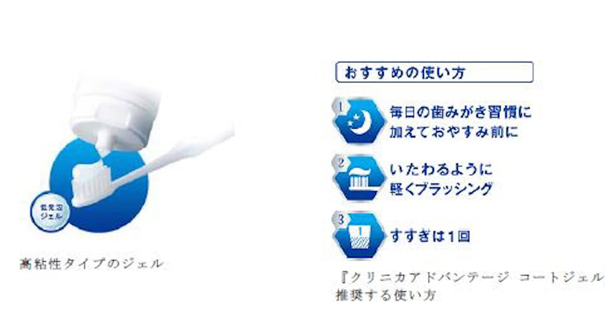ライオン「クリニカアドバンテージコートジェル」拡大 フッ素を従来の約1.5倍増量。 就寝前に使用することで、歯を強くし、虫歯の発生. ウエルテック コンクール『ジェルコートf』 ライオン『クリニカ アドバンテージ コートジェル』 ライオン歯科材『チェックアップ ルートケア』 ライオン歯科材『システマ sp-t ジェル』 商品情報:. クリニカ アドバンテージ デンタルジェル(60g)の価格比較、最安値比較。評価:5.00口コミ:1件(9/7時点 - 商品価格ナビ).